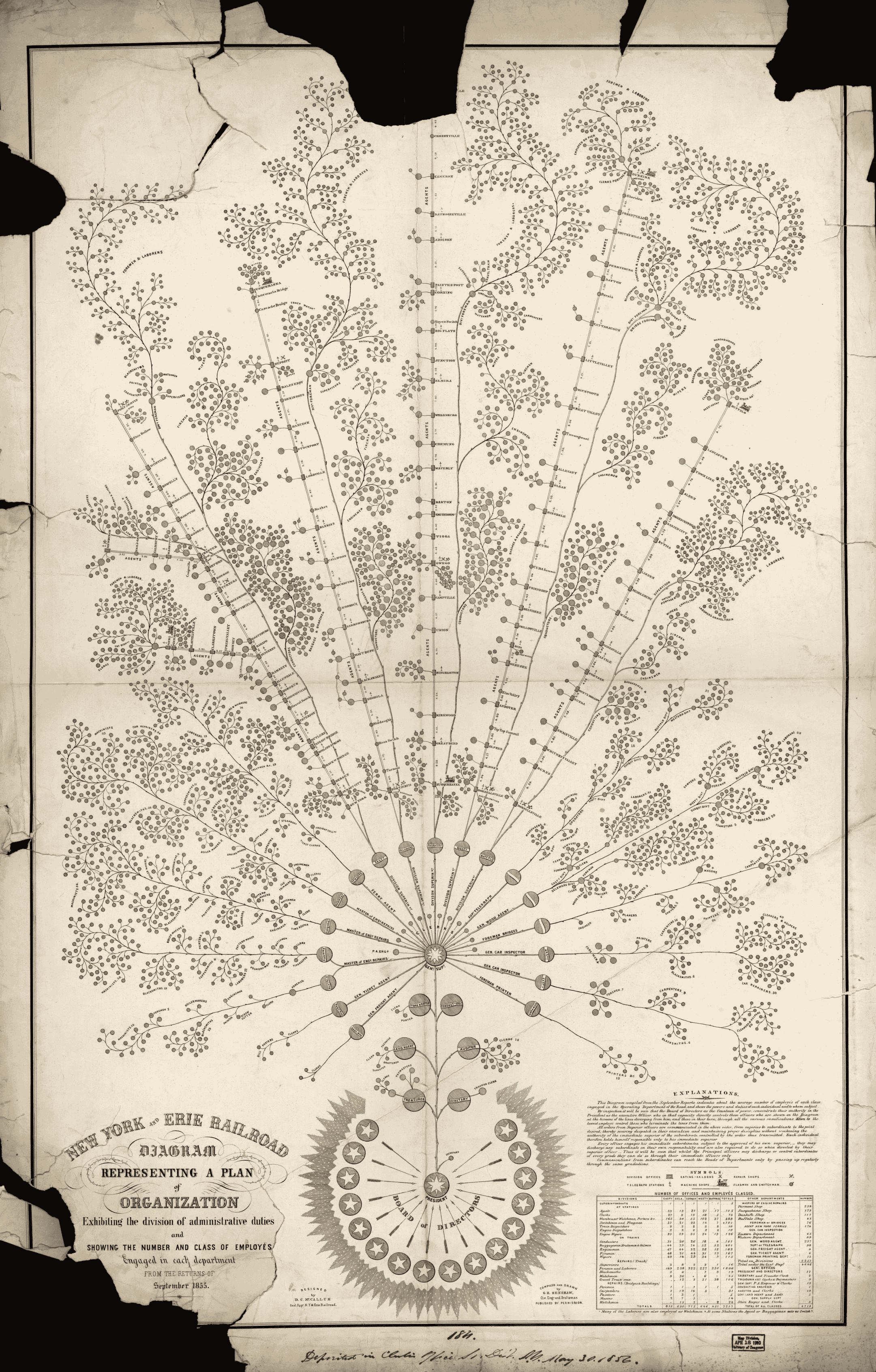 Organizational chart for the New York and Erie Railroad, 1855. The modercorporation and org